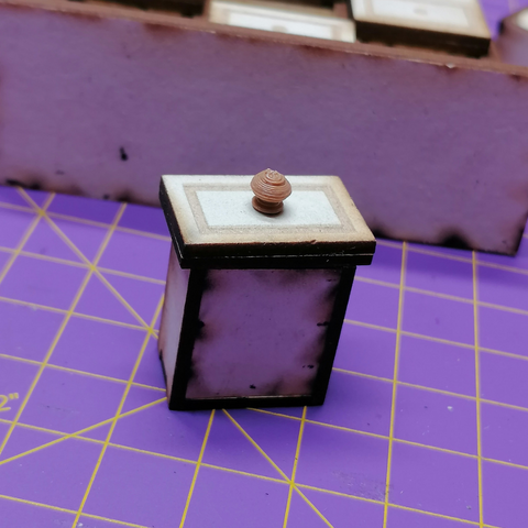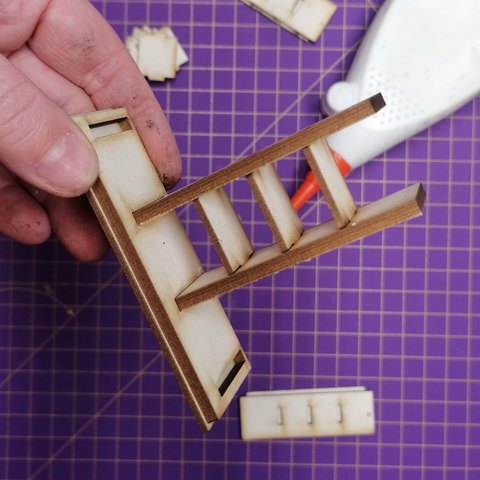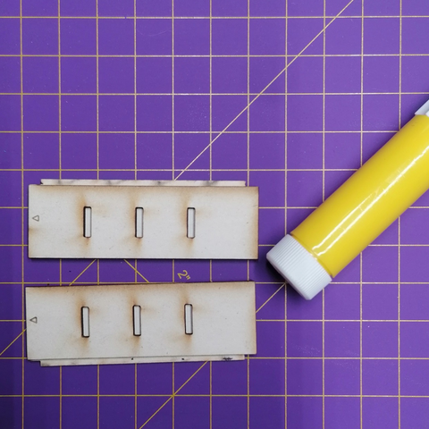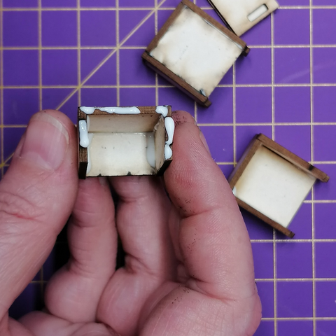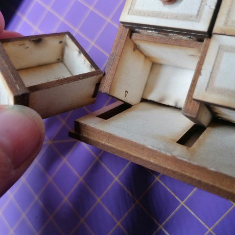 Klebe mit Leim die Rückwand auf. Und sobald der Leim trocken ist, kannst Du schon die Schubladen einstecken.