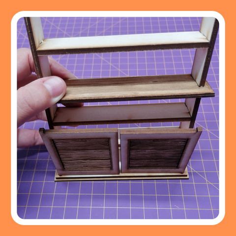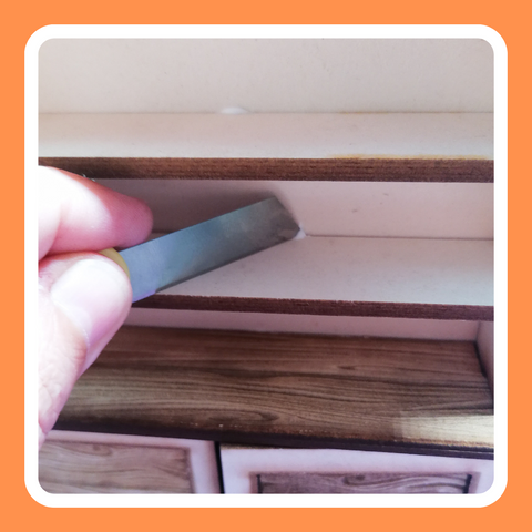 Wenn der Kleber getrocknet ist, kannst Du die Regalböden einkleben.