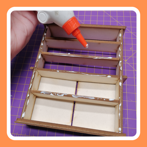 Klebe den Zwischenboden ein und stecke mit etwas Leim den Boden an.