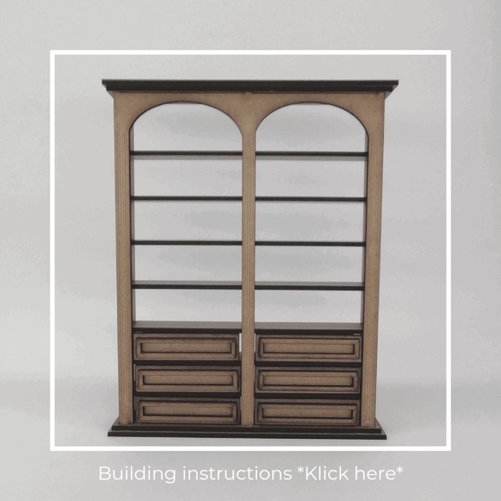 In die unteren drei Fächer passen Schubladen. Sortiere Dir die Schubladenteile und klebe den kleinen Rahmen auf eine Schubladenfront….