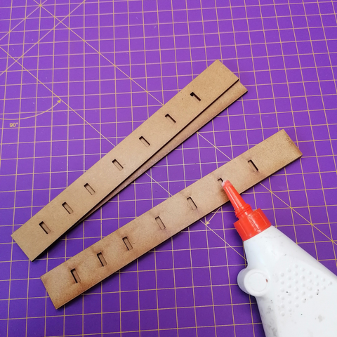 Wenn der Kleber trocken ist, kannst Du die Zwischenböden einstecken und mit etwas Leim fixieren.