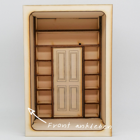 Wenn der Kleber trocken ist kannst Du die zwischenteile am Boden einsetzen. Denke daran die Tür zwischen den Löchern einzusetzen.