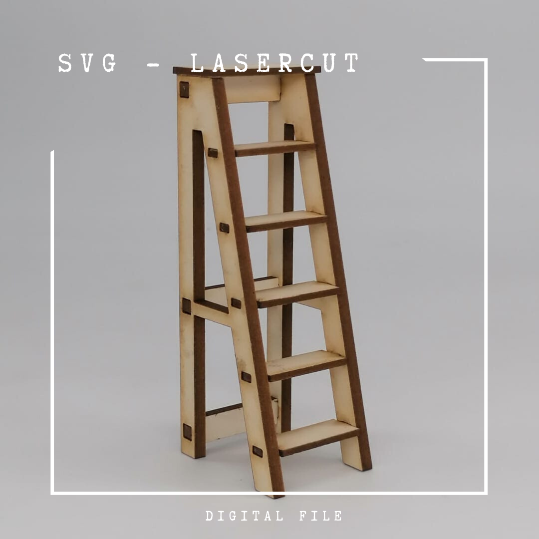 Digitaler Download – SVG Schnittdatei für Lasercut für eine Miniatur Bibliotheks Leiter
