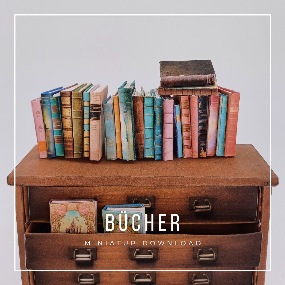 Verleihe Deinen Miniaturwelten einen Hauch von Eleganz und Farbenfreude mit unserer Druckdatei zum Basteln von 25 unterschiedlichen Büchern in wunderschönen Pastellfarben. Perfekt für Roombox Dioramen, Puppenhäuser oder Book Nooks, bietet diese Sammlung alles, was Du brauchst, um eine stilvolle und realistische Miniaturbibliothek zu gestalten. Jedes Buch ist im Maßstab 1:12 gehalten und ideal für eine Vielzahl von Miniaturprojekten.