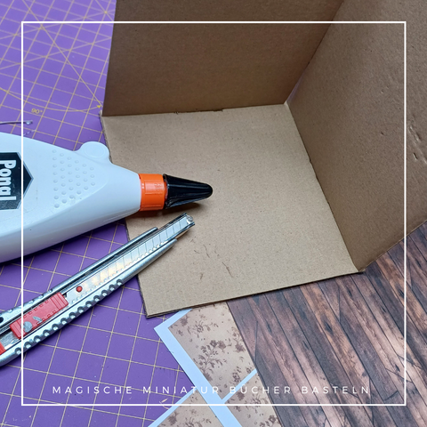 Nachdem die Wände tapeziert sind, kann die Buchecke zusammengeklebt werden.