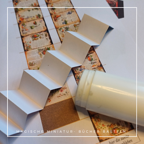 Fixiere die Seiten indem Du die Zieharmonika mit einem Klebestift einstreichst.