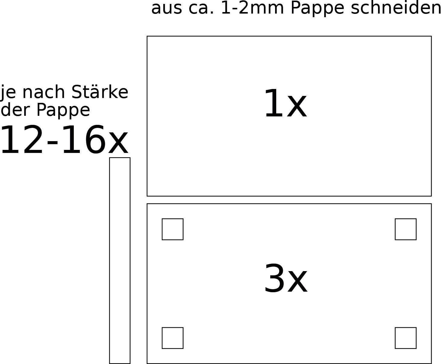 Übertrage die Schablonen auf 1-2 mm Pappe (Versandkarton)