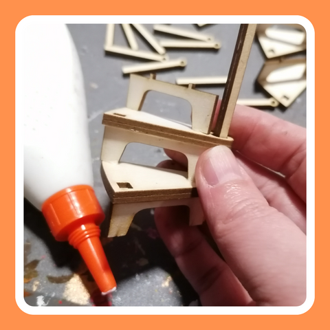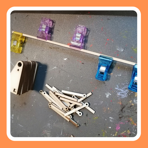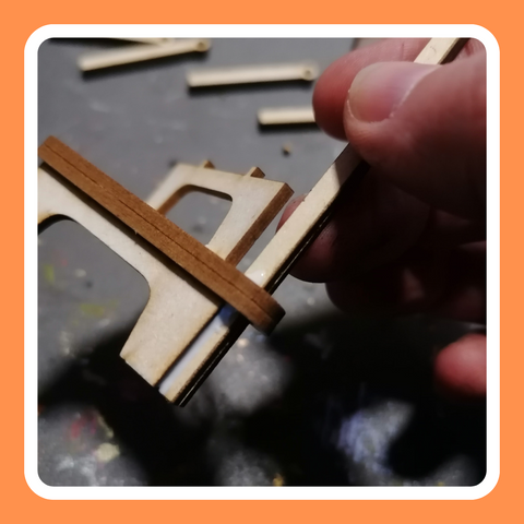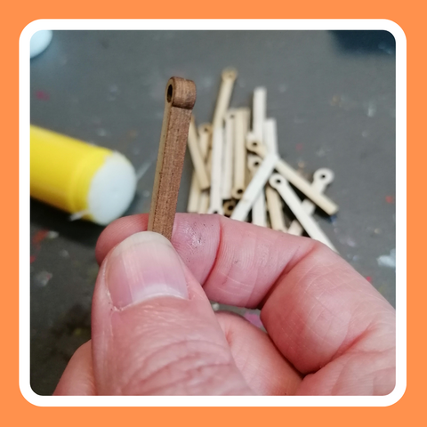 Wärend die Treppe trocknet kannst Du jetzt die Geländerpfosten zusammen kleben.